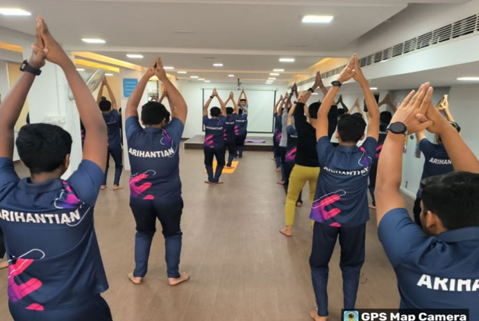 At Arihant Institute of Commerce and Management, V.V. Puram, International Yoga Day was celebrated with a strong focus on physical, mental, and emotional well-being. Principal Dr. Girish C. addressed the gathering, inspiring students to embrace harmony, inner strength, and a healthier lifestyle. As seen here, nearly 130 students participated, beginning with light warm-up exercises and moving into yogasanas that showcased their agility, focus, and mindfulness. The event strengthened a campus culture that values self-care and holistic growth.